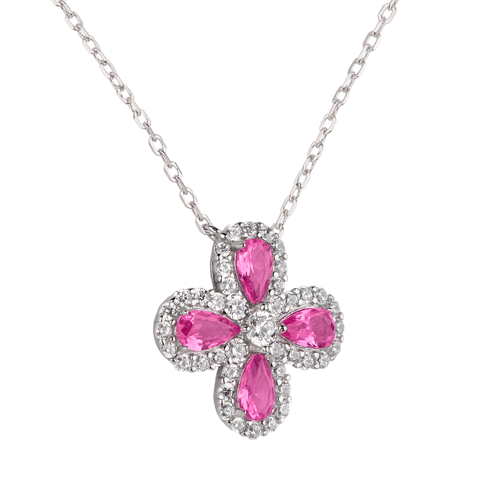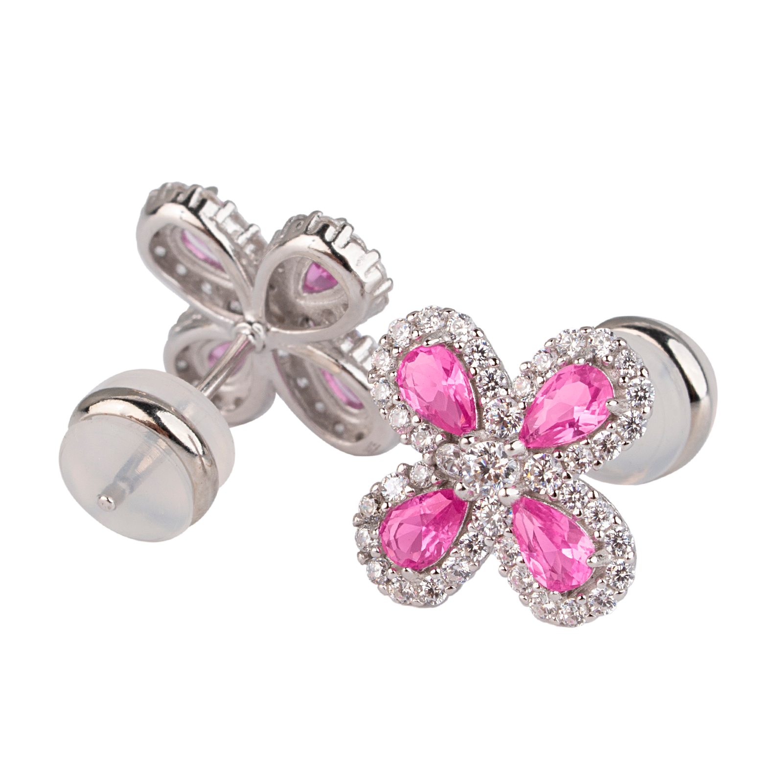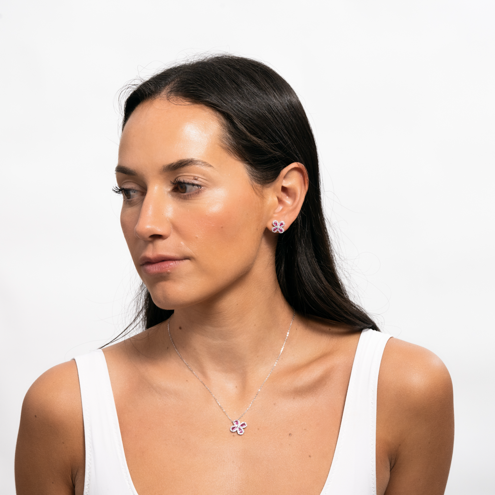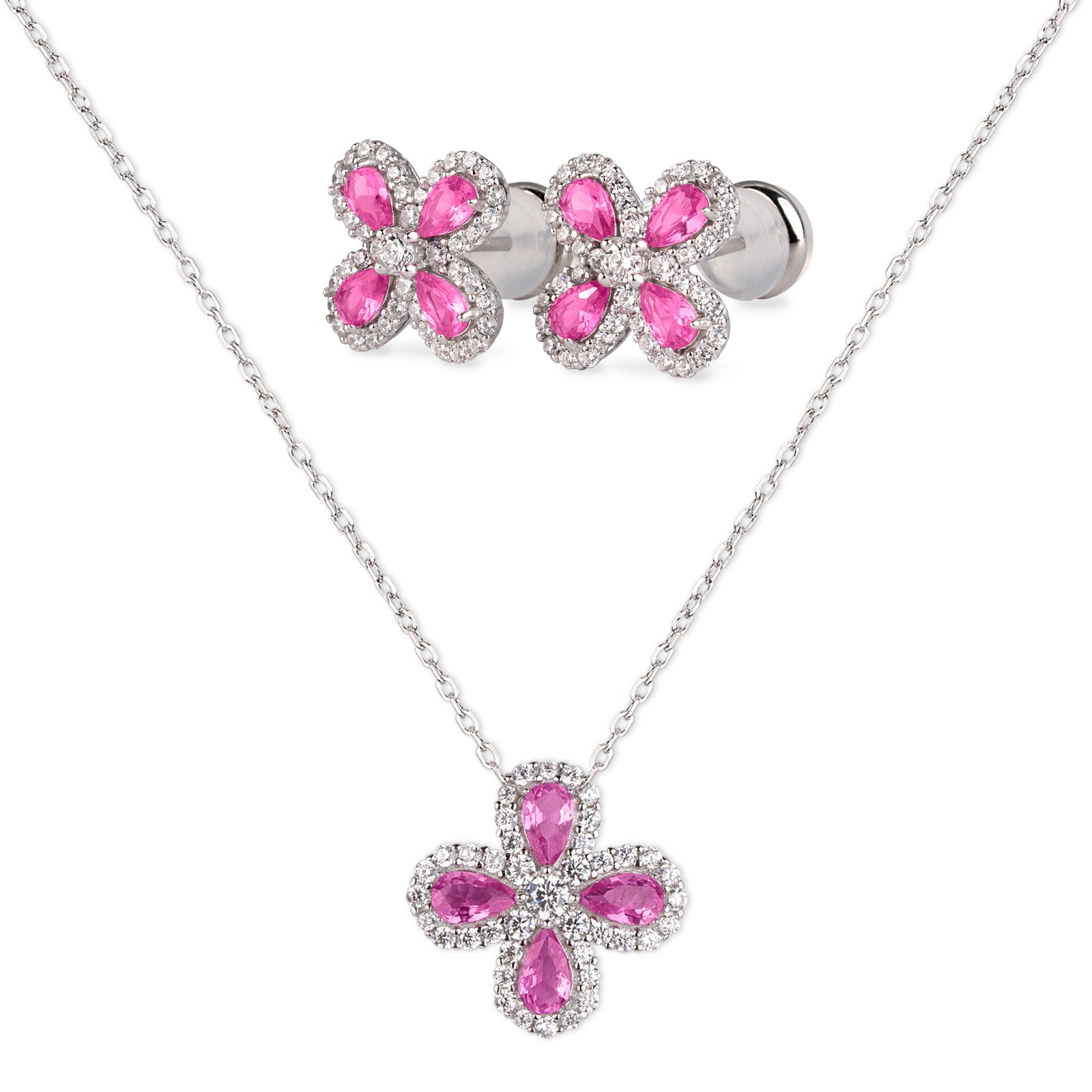 Set Flor Plata .925 Aina - Rosa Fucsia