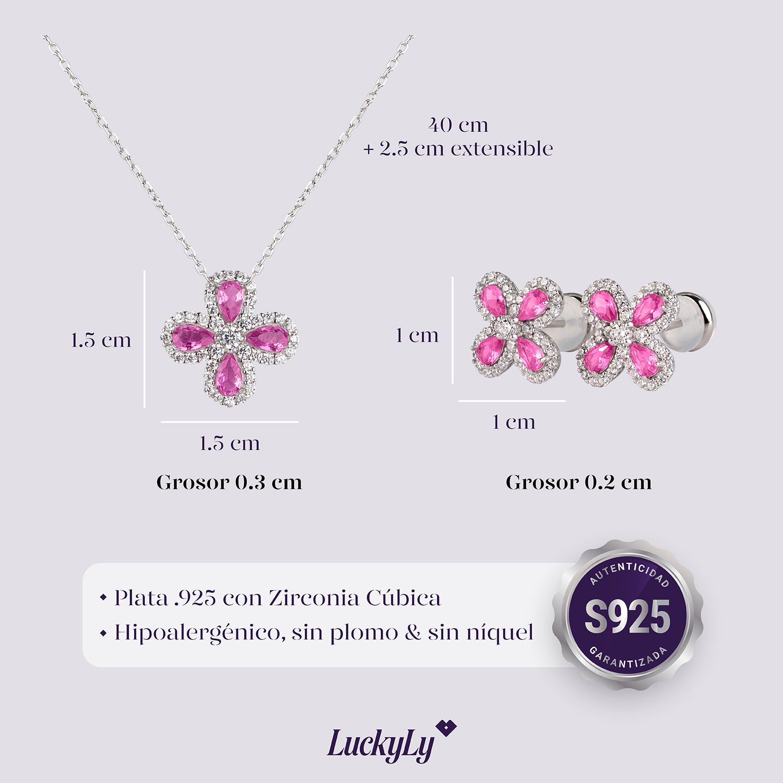 - Elaborados en Plata .925 (Sterling Silver) con zirconia cúbica.